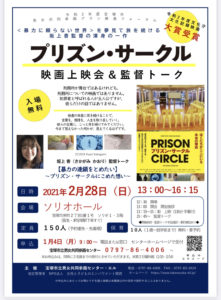 情報提供 【ご案内】プリズン・サークル 映画上映会&監督トーク 「暴力の連鎖を止めたい」 宝塚ラボ子 2021年2月2日 映画のご案内です 2月28日(日)【プリズン・サークル】が宝塚ソリオホールで観れます。 暴力の連鎖を止めたい監督の思いをご一緒に共有しませんか。 プリズン・サークル 映画 暴力 止めたい 連鎖