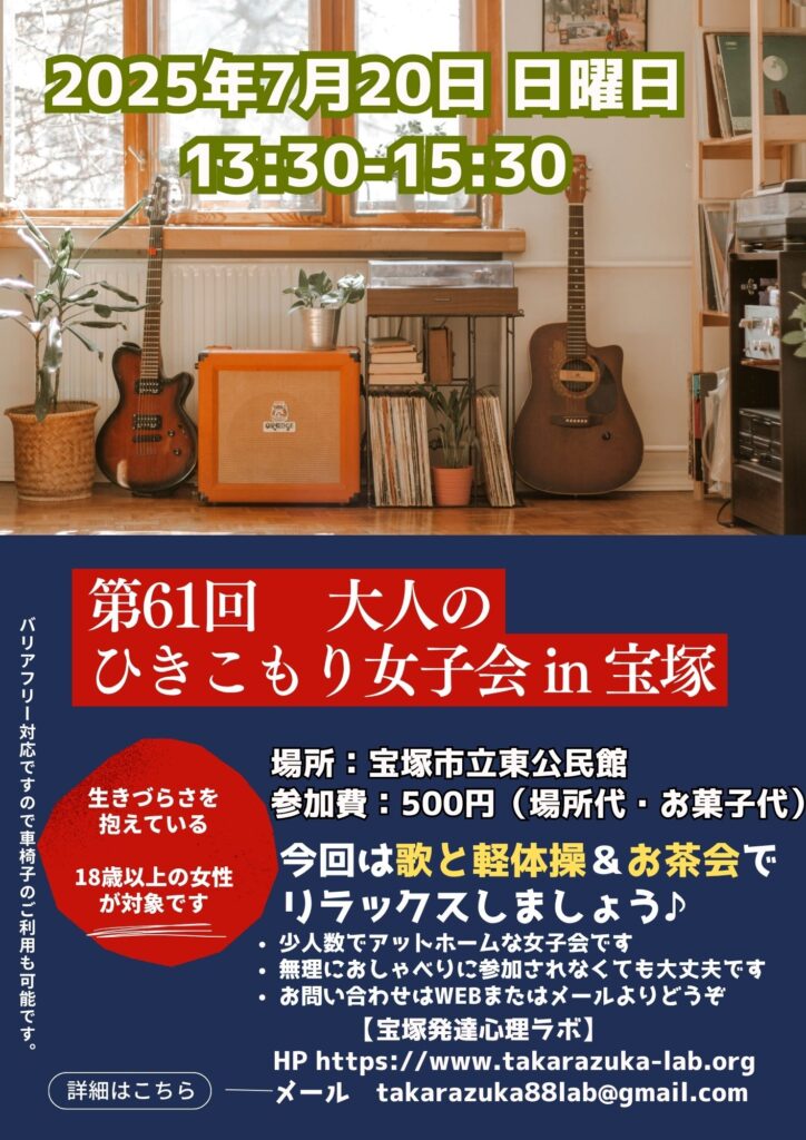第61回 おとなのひきこもり女子会in宝塚を開催します。