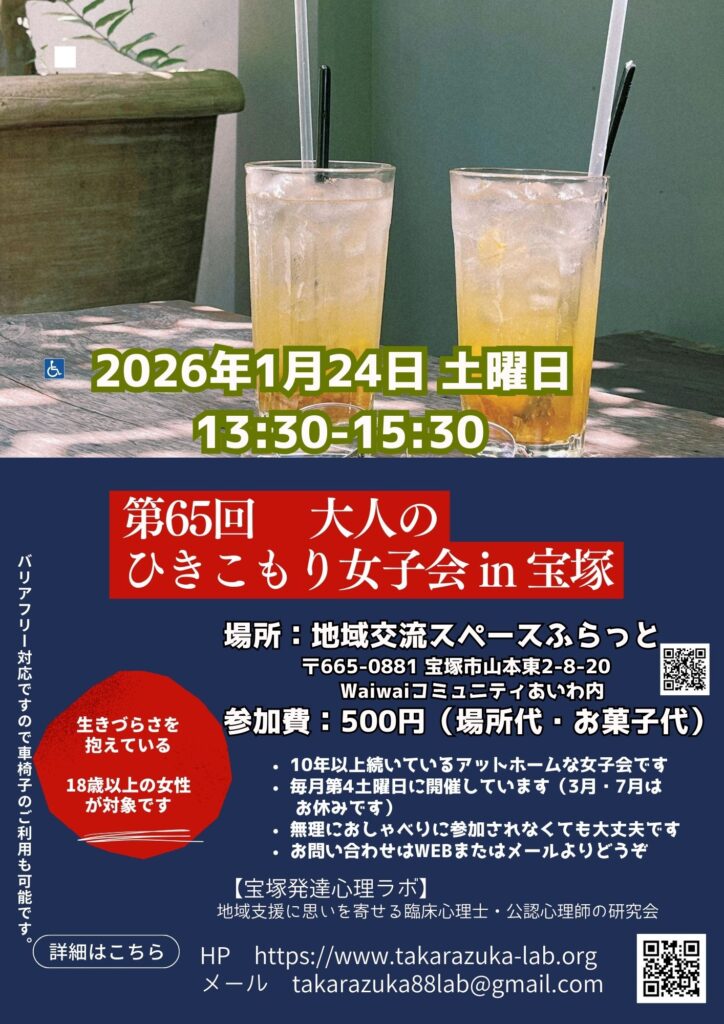 第65回 おとなのひきこもり女子会in宝塚を開催します。